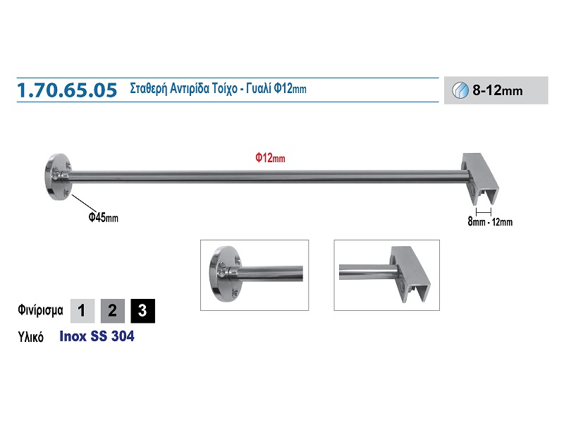 1.70.65.05 ΣΤΑΘΕΡΗ ΑΝΤΙΡΙΔΑ ΤΟΙΧΟ – ΓΥΑΛΙ Φ12mm 12332