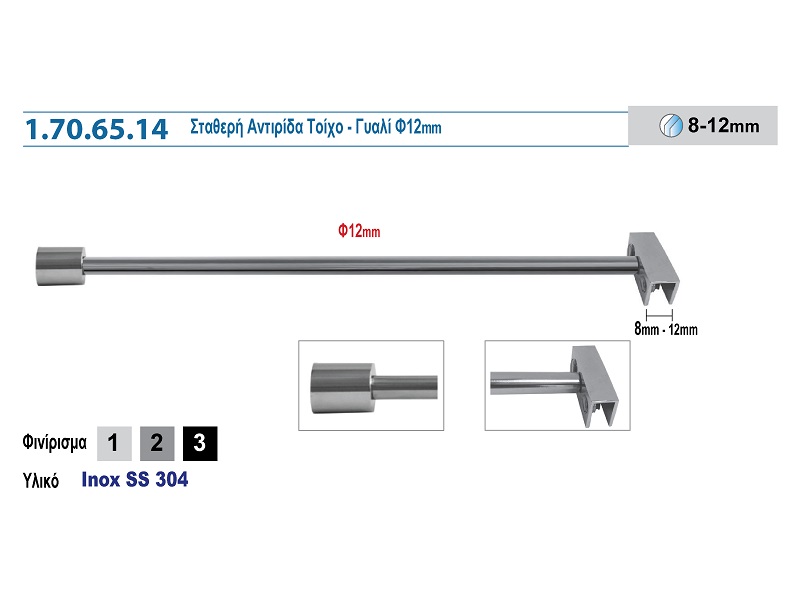 1.70.65.14 ΣΤΑΘΕΡΗ ΑΝΤΙΡΙΔΑ ΤΟΙΧΟ – ΓΥΑΛΙ Φ12mm 12335