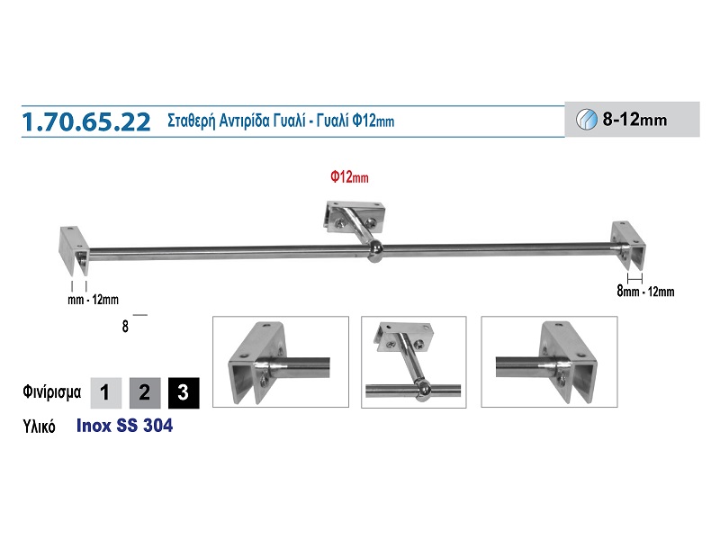 1.70.65.22 ΣΤΑΘΕΡΗ ΑΝΤΙΡΙΔΑ ΓΥΑΛΙ – ΓΥΑΛΙ Φ12mm 12340