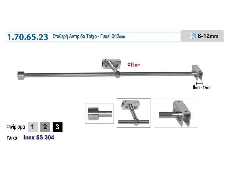 1.70.65.23 ΣΤΑΘΕΡΗ ΑΝΤΙΡΙΔΑ ΤΟΙΧΟ – ΓΥΑΛΙ Φ12mm 12341