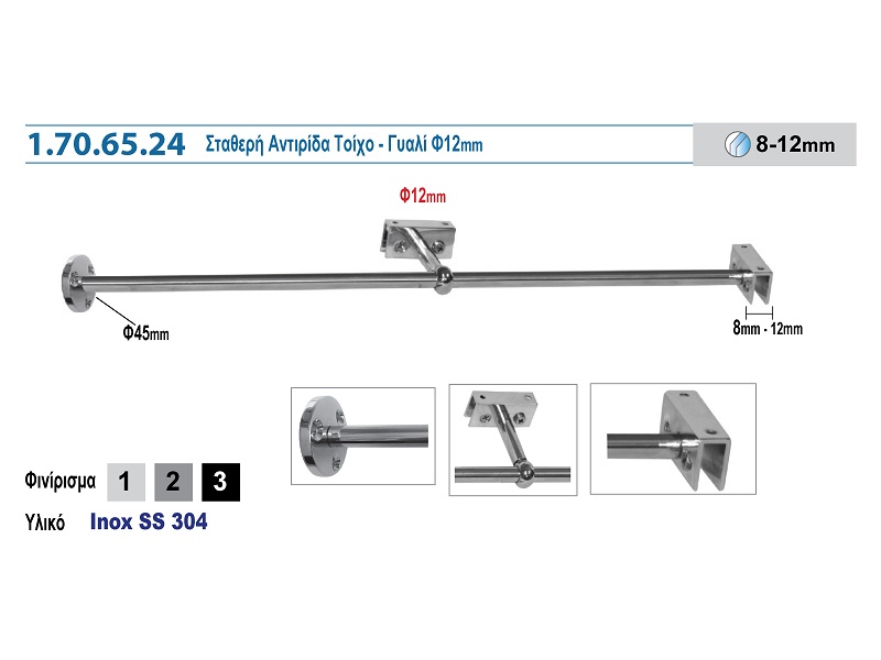1.70.65.24 ΣΤΑΘΕΡΗ ΑΝΤΙΡΙΔΑ ΤΟΙΧΟ – ΓΥΑΛΙ Φ12mm 12342