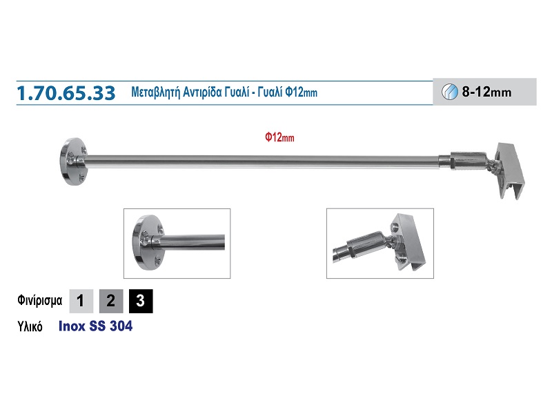 1.70.65.33 ΜΕΤΑΒΛΗΤΗ ΑΝΤΙΡΙΔΑ ΓΥΑΛΙ- ΓΥΑΛΙ Φ12mm 12354