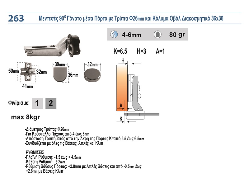 263 ΜΕΝΤΕΣΕΣ 90° ΓΟΝΑΤΟ ΜΕΣΑ ΠΟΡΤΑ ΜΕ ΤΡΥΠΑ Φ26mm 12379