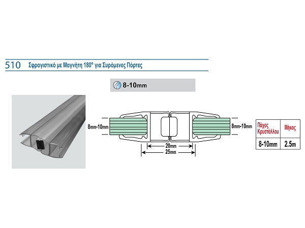 510 ΣΦΡΑΓΙΣΤΙΚΟ ΜΕ ΜΑΓΝΗΤΗ 180° ΓΙΑ ΣΥΡΟΜΕΝΕΣ ΠΟΡΤΕΣ 12480