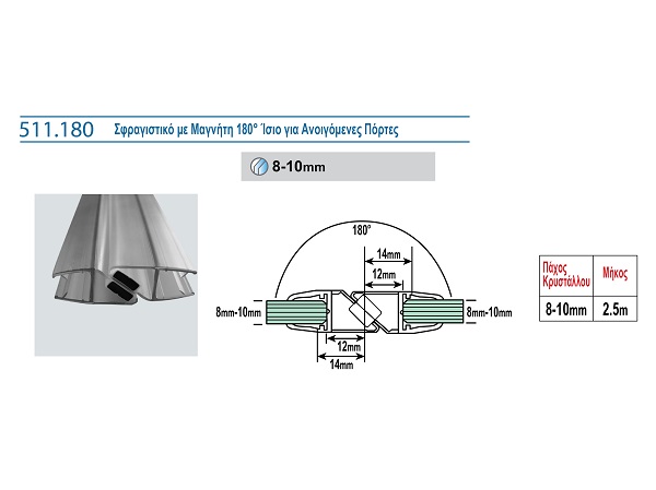 511.180 ΣΦΡΑΓΙΣΤΙΚΟ ΜΕ ΜΑΓΝΗΤΗ 180° ΙΣΙΟ ΓΙΑ ΑΝΟΙΓΟΜΕΝΕΣ ΠΟΡΤΕΣ 12481